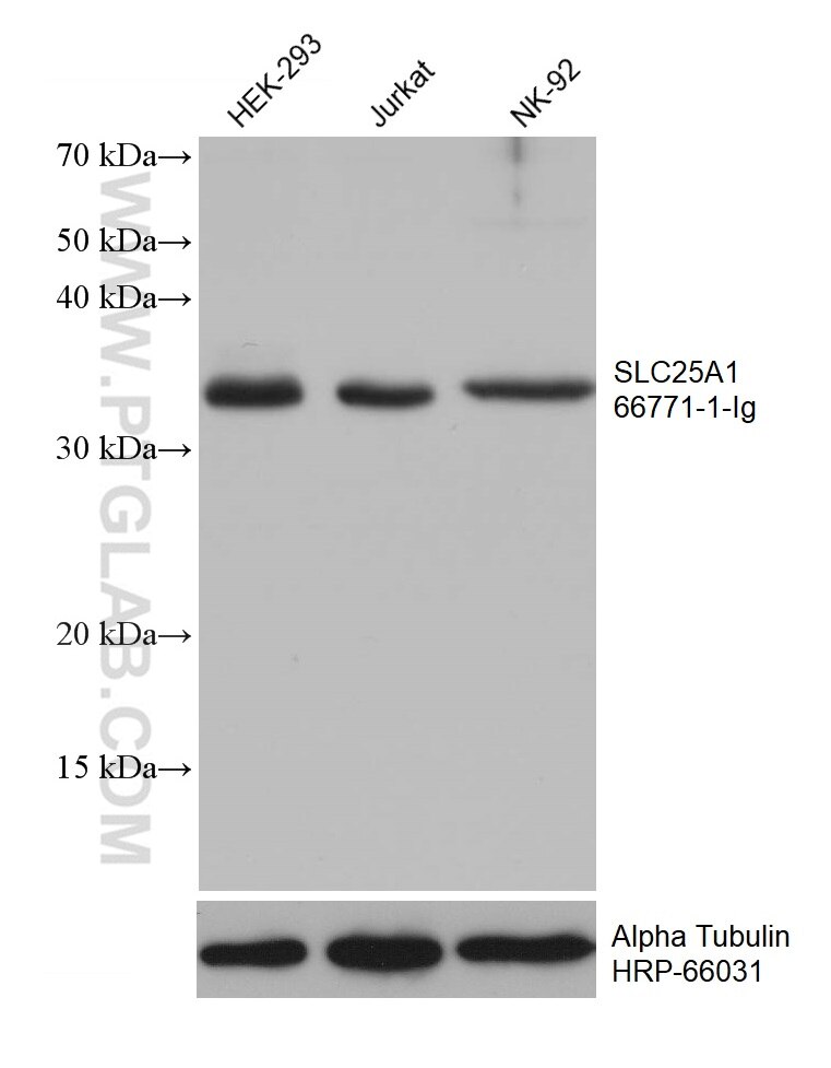 The SLC25A1 antibody from Proteintech is a mouse monoclonal antibody to a recombinant protein of human SLC25A1. This antibody recognizes human, mouse, rat antigen. The SLC25A1 antibody has been validated for the following applications: WB, ELISA analysis.