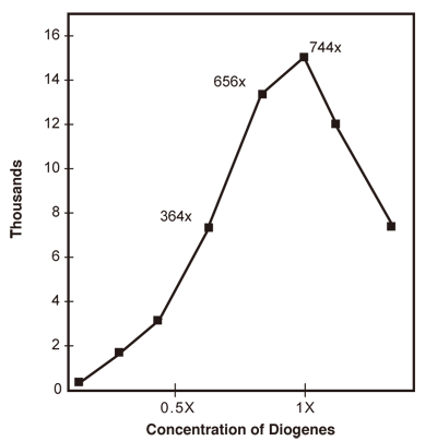 図1.最適な濃度では、DiogenesTMアッセイキット は600倍の感度を示す。
