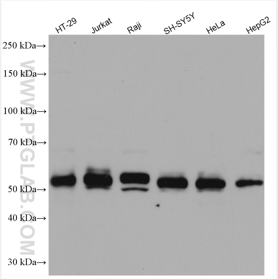 The c-MYC antibody from Proteintech is a rabbit polyclonal antibody to a recombinant protein of human c-MYC. This antibody recognizes human antigen. The c-MYC antibody has been validated for the following applications: WB, IF/ICC, FC (Intra), IP, ELISA analysis.