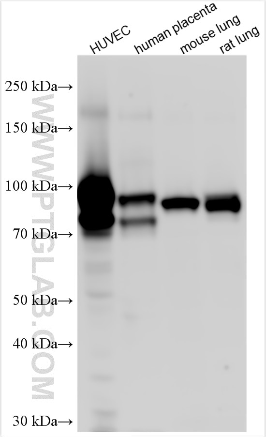 The Endoglin/CD105 antibody from Proteintech is a rabbit polyclonal antibody to a recombinant protein of human Endoglin/CD105. This antibody recognizes human, mouse, rat antigen. The Endoglin/CD105 antibody has been validated for the following applications: WB, IHC, IP, ELISA analysis.