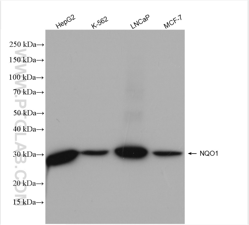 The NQO1 antibody from Proteintech is a rabbit polyclonal antibody to a recombinant protein of human NQO1. This antibody recognizes human antigen. The NQO1 antibody has been validated for the following applications: WB, IHC, IF/ICC, FC (Intra), IP, ELISA analysis.