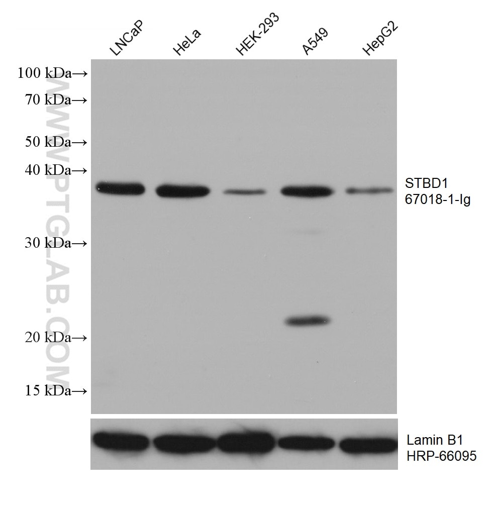 The STBD1 antibody from Proteintech is a mouse monoclonal antibody to a recombinant protein of human STBD1. This antibody recognizes human, mouse antigen. The STBD1 antibody has been validated for the following applications: WB, IHC, IF/ICC, ELISA analysis.
