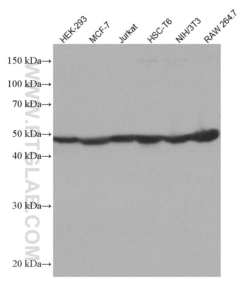 The Ribosomal protein L4 antibody from Proteintech is a mouse monoclonal antibody to a recombinant protein of human Ribosomal protein L4. This antibody recognizes human, mouse, rat antigen. The Ribosomal protein L4 antibody has been validated for the following applications: WB, IHC, IF/ICC, FC (Intra), ELISA analysis.