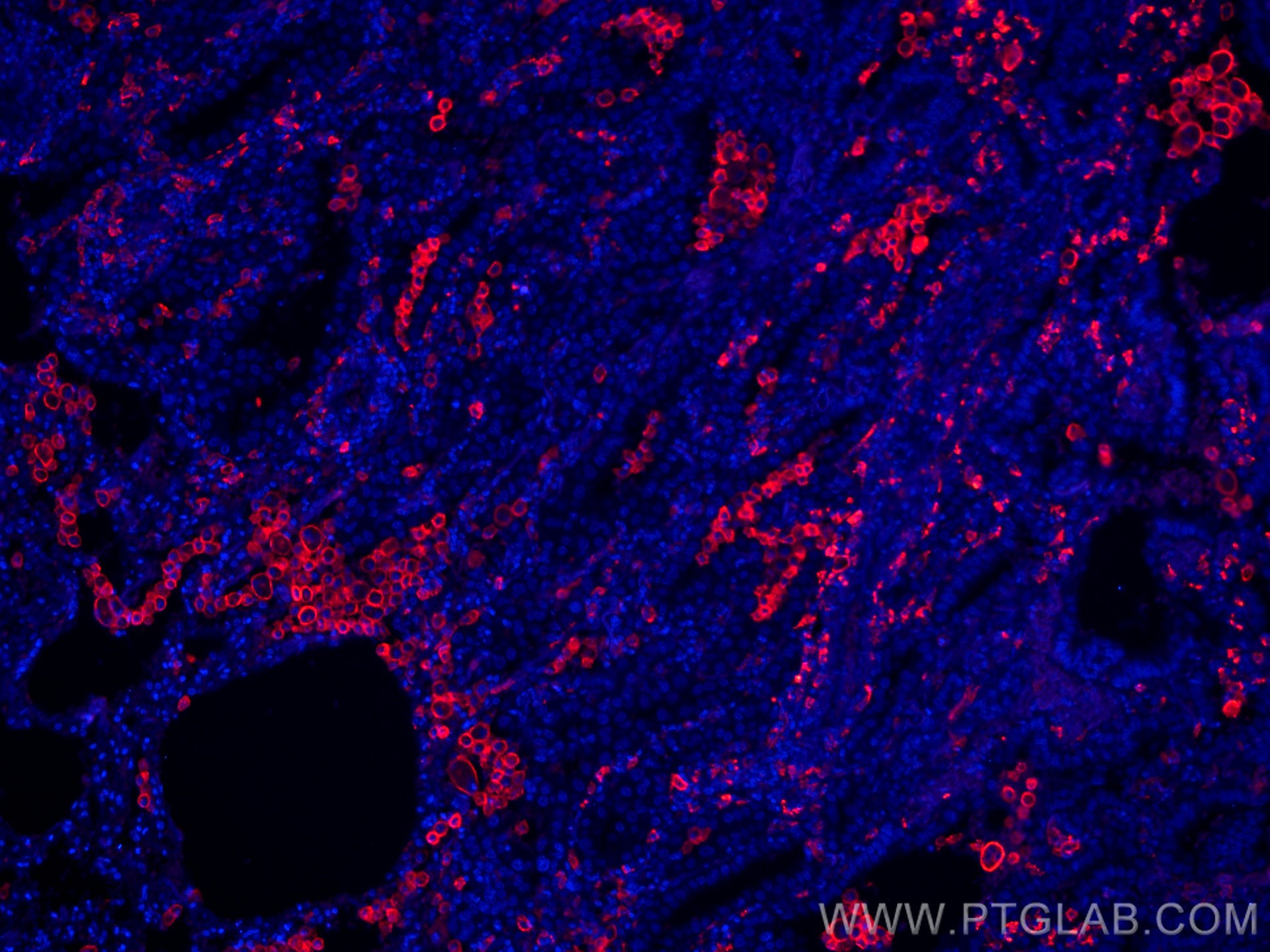 The CD206 antibody from Proteintech is a mouse monoclonal antibody to a peptide of human CD206. This antibody recognizes human antigen. The CD206 antibody has been validated for the following applications: IF-P analysis. This antibody is coraliteR594.