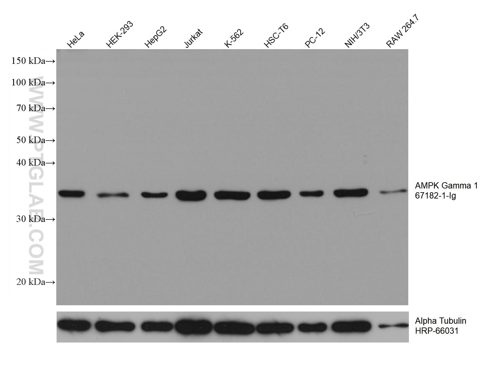 The AMPK Gamma 1 antibody from Proteintech is a mouse monoclonal antibody to a recombinant protein of human AMPK Gamma 1. This antibody recognizes human, mouse, rat antigen. The AMPK Gamma 1 antibody has been validated for the following applications: WB, ELISA analysis.