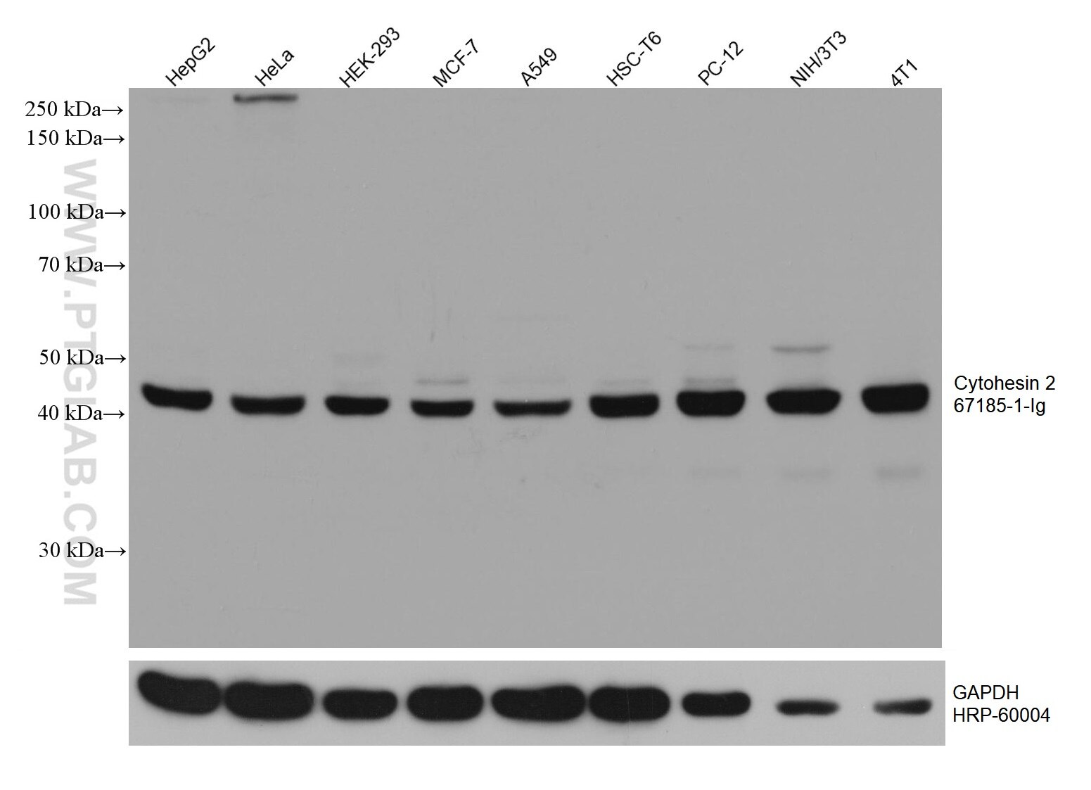 The Cytohesin 2 antibody from Proteintech is a mouse monoclonal antibody to a recombinant protein of human Cytohesin 2. This antibody recognizes human, mouse, rat antigen. The Cytohesin 2 antibody has been validated for the following applications: WB, IHC, IF/ICC, ELISA analysis.