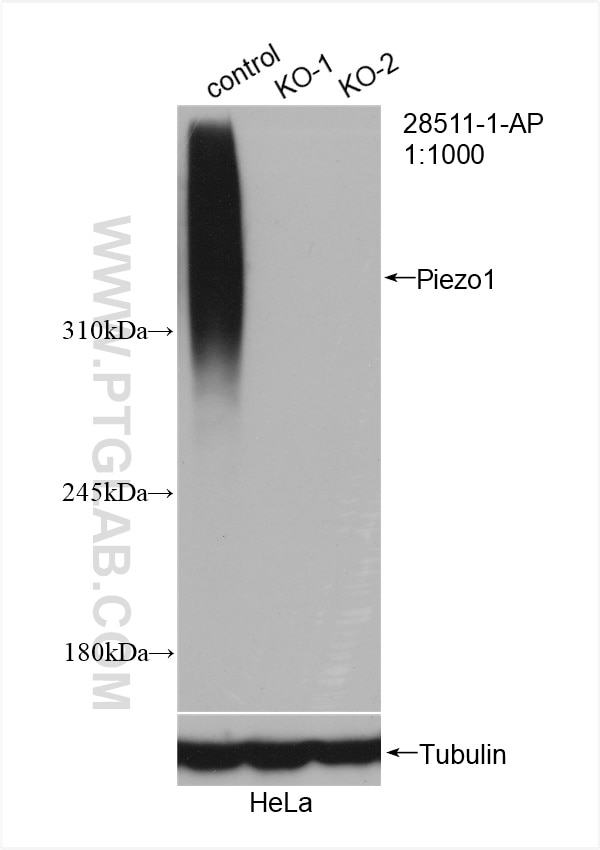 The Piezo1 (extracellular domain) antibody from Proteintech is a rabbit polyclonal antibody to a recombinant protein of human Piezo1 (extracellular domain). This antibody recognizes human antigen. The Piezo1 (extracellular domain) antibody has been validated for the following applications: WB, IHC, IF/ICC, ELISA analysis.
