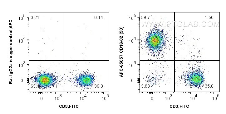 The CD16/32 antibody from Proteintech is a rat monoclonal antibody to a vh81x tg b cells and t220 stromal cell line of mouse CD16/32. This antibody recognizes mouse antigen. The CD16/32 antibody has been validated for the following applications: FC analysis. This antibody is apc.