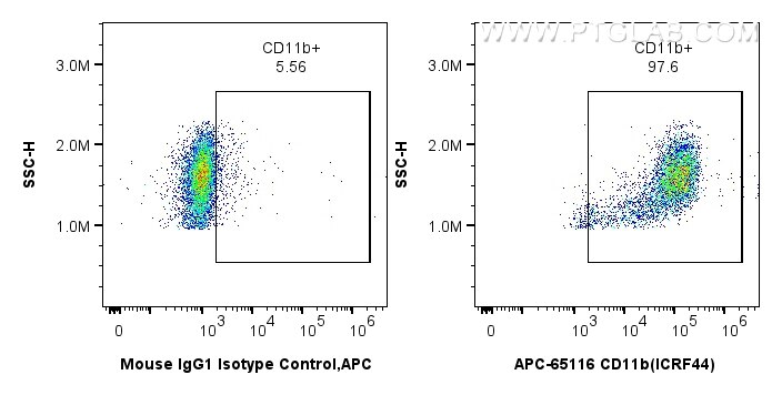 The CD11b antibody from Proteintech is a mouse monoclonal antibody to a rheumatoid synovial cells and human monocytes of human CD11b. This antibody recognizes human antigen. The CD11b antibody has been validated for the following applications: FC analysis. This antibody is apc.