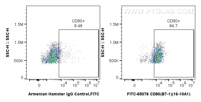 The CD80 antibody from Proteintech is a armenian hamster monoclonal antibody to a cho cell line transfected with mouse b7 (cd80) of mouse CD80. This antibody recognizes mouse antigen. The CD80 antibody has been validated for the following applications: FC analysis. This antibody is fitc plus.