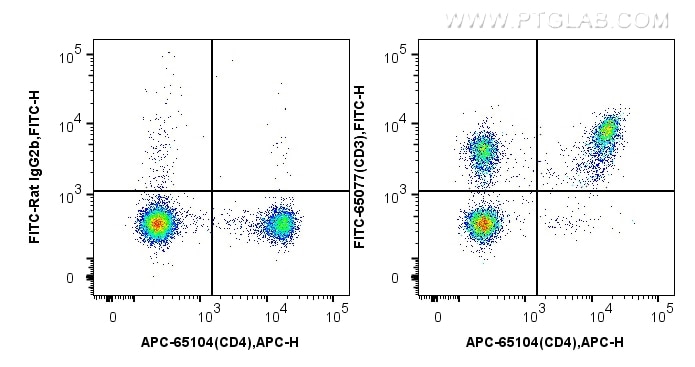 The CD3 antibody from Proteintech is a rat monoclonal antibody to a γδtcr-positive t-t hybridoma d1 of mouse CD3. This antibody recognizes mouse antigen. The CD3 antibody has been validated for the following applications: FC analysis. This antibody is fitc plus.