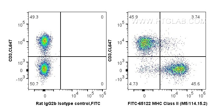 The MHC Class II (I-A/I-E) antibody from Proteintech is a rat monoclonal antibody to a activated c57bl/6 mouse spleen cells of mouse MHC Class II (I-A/I-E). This antibody recognizes mouse antigen. The MHC Class II (I-A/I-E) antibody has been validated for the following applications: FC analysis. This antibody is fitc plus.