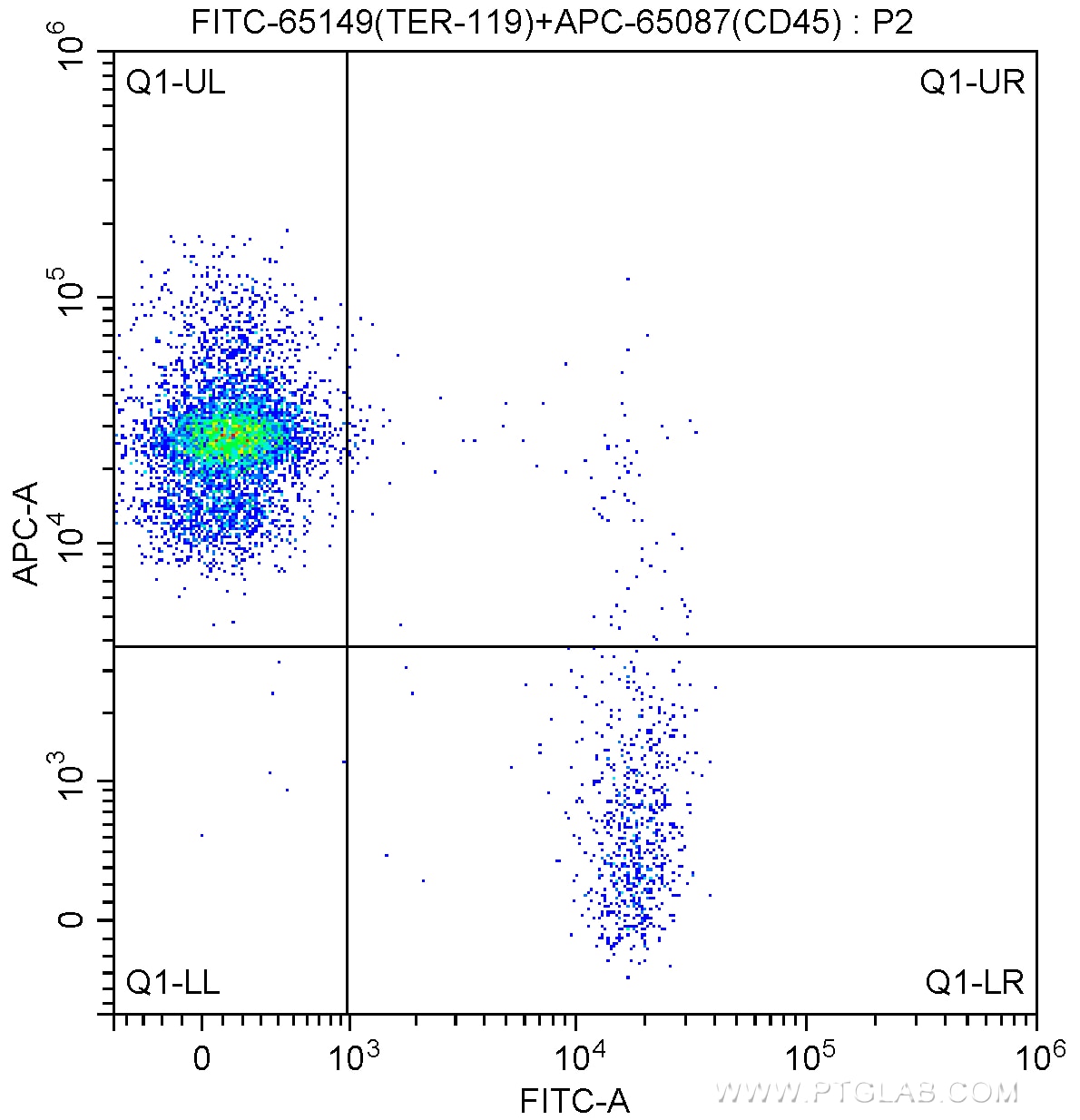 The TER-119 antibody from Proteintech is a rat monoclonal antibody to a day-14 fetal liver cells from a c57bl/6 mouse of mouse TER-119. This antibody recognizes mouse antigen. The TER-119 antibody has been validated for the following applications: FC analysis. This antibody is fitc.