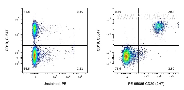 The CD20 antibody from Proteintech is a mouse monoclonal antibody to a human tonsillar b cells of human CD20. This antibody recognizes human antigen. The CD20 antibody has been validated for the following applications: FC analysis. This antibody is pe.