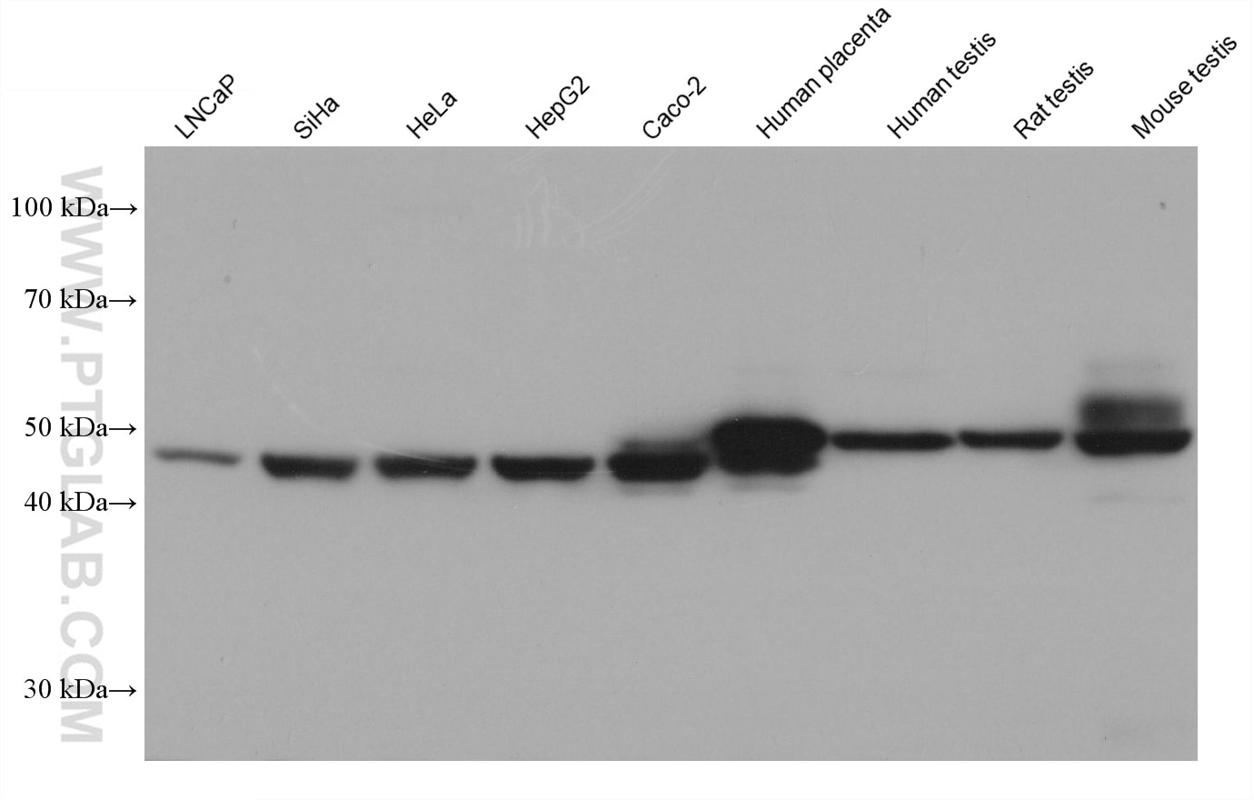 The CYP11A1 antibody from Proteintech is a mouse monoclonal antibody to a recombinant protein of human CYP11A1. This antibody recognizes human, mouse, rat antigen. The CYP11A1 antibody has been validated for the following applications: WB, IHC, ELISA analysis.