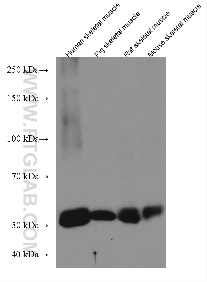 The CAPN3 antibody from Proteintech is a mouse monoclonal antibody to a recombinant protein of human CAPN3. This antibody recognizes human, mouse, rat, pig antigen. The CAPN3 antibody has been validated for the following applications: WB, IHC, IF/ICC, ELISA analysis.