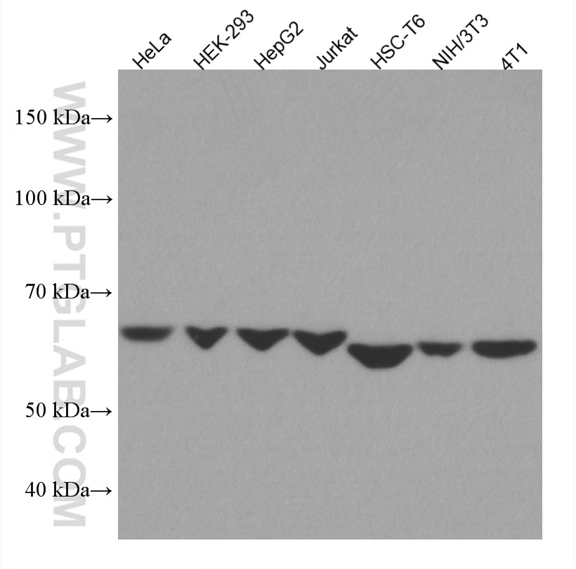 The ERO1L antibody from Proteintech is a mouse monoclonal antibody to a recombinant protein of human ERO1L. This antibody recognizes human, mouse, rat antigen. The ERO1L antibody has been validated for the following applications: WB, IHC, IF/ICC, IF-P, ELISA analysis.