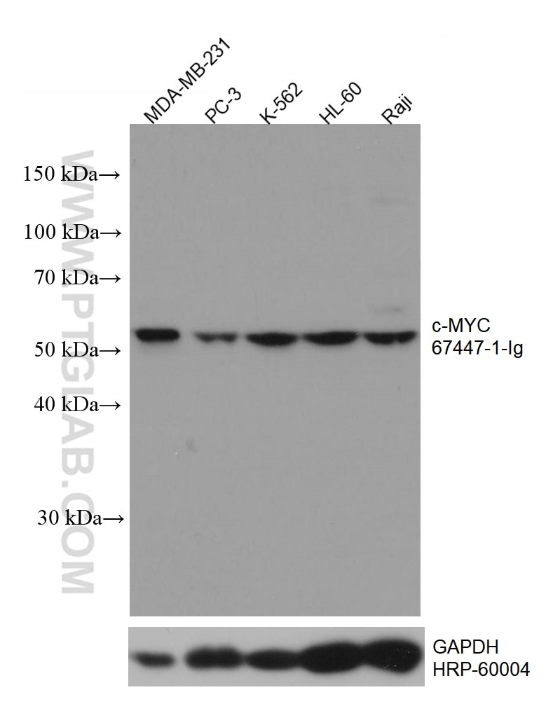 The c-MYC antibody from Proteintech is a mouse monoclonal antibody to a recombinant protein of human c-MYC. This antibody recognizes human, mouse, rat antigen. The c-MYC antibody has been validated for the following applications: WB, IHC, FC (Intra), ELISA analysis.