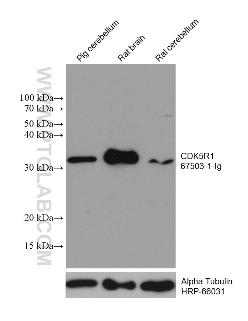 The CDK5R1 antibody from Proteintech is a mouse monoclonal antibody to a recombinant protein of human CDK5R1. This antibody recognizes human, mouse, rat, pig, rabbit antigen. The CDK5R1 antibody has been validated for the following applications: WB, IHC, ELISA analysis.