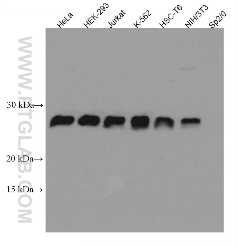 The HPRT antibody from Proteintech is a mouse monoclonal antibody to a recombinant protein of human HPRT. This antibody recognizes human, mouse, rat antigen. The HPRT antibody has been validated for the following applications: WB, IHC, IF/ICC, ELISA analysis.