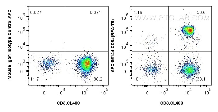 The CD8a antibody from Proteintech is a mouse monoclonal antibody to a n/a of human CD8a. This antibody recognizes human antigen. The CD8a antibody has been validated for the following applications: FC analysis. This antibody is apc.