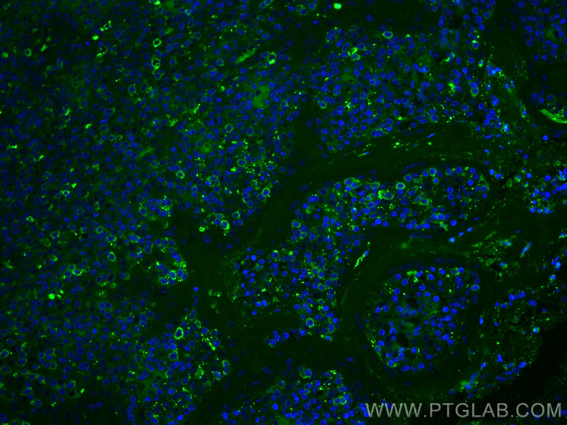 The CD27 antibody from Proteintech is a mouse monoclonal antibody to a recombinant protein of human CD27. This antibody recognizes human antigen. The CD27 antibody has been validated for the following applications: IF-P analysis. This antibody is coraliteR plus 488.