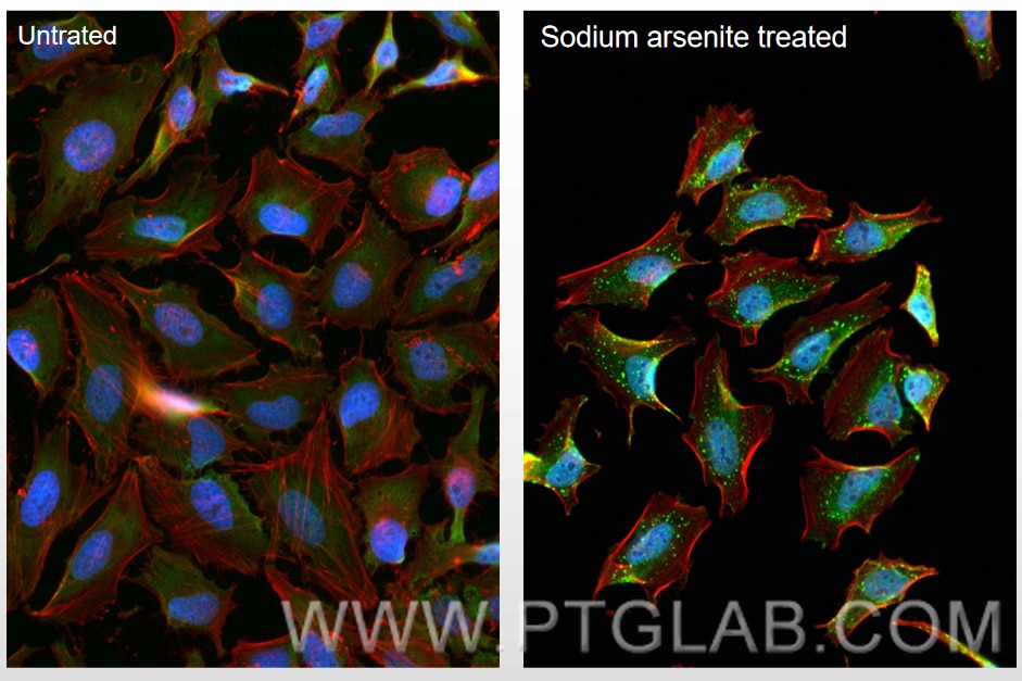 The G3BP1 antibody from Proteintech is a mouse monoclonal antibody to a recombinant protein of human G3BP1. This antibody recognizes human, mouse, rat, pig antigen. The G3BP1 antibody has been validated for the following applications: IF/ICC analysis. This antibody is coraliteR plus 488.