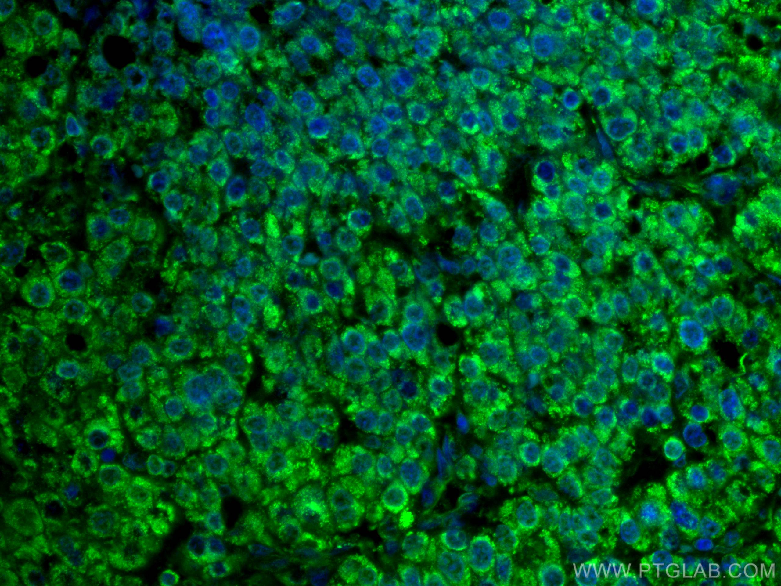 The MLKL antibody from Proteintech is a mouse monoclonal antibody to a recombinant protein of human MLKL. This antibody recognizes human, mouse antigen. The MLKL antibody has been validated for the following applications: IF/ICC, IF-P analysis. This antibody is coraliteR plus 488.