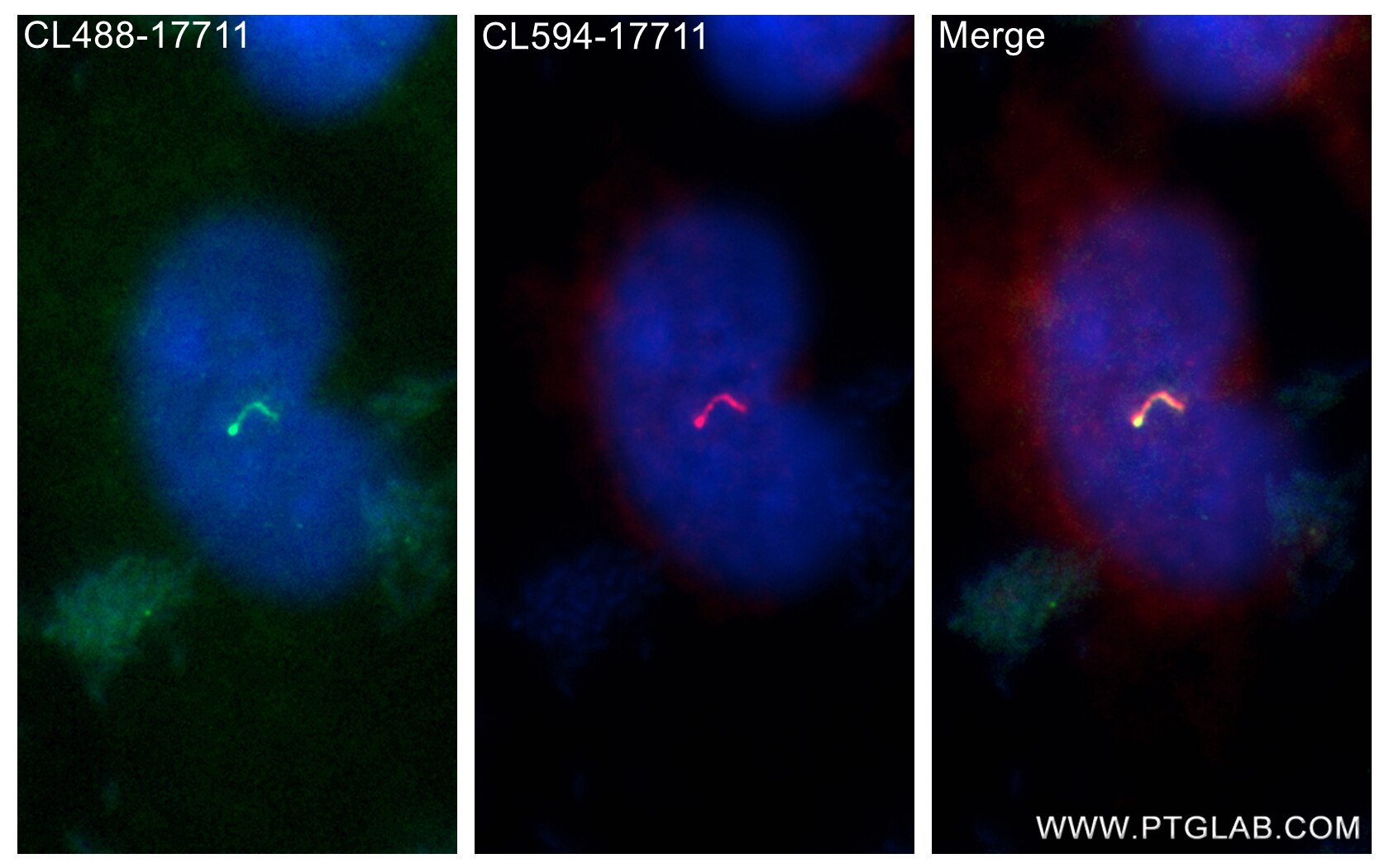 The ARL13B antibody from Proteintech is a rabbit polyclonal antibody to a recombinant protein of human ARL13B. This antibody recognizes human, mouse, rat, canine antigen. The ARL13B antibody has been validated for the following applications: IF/ICC analysis. This antibody is coraliteR594.