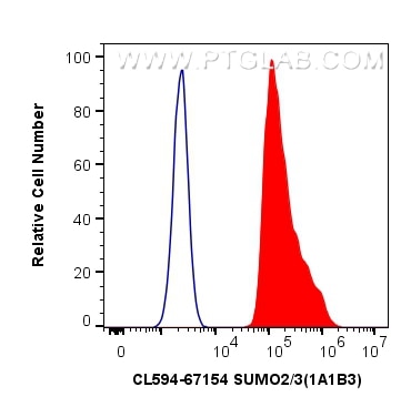 The SUMO2/3 antibody from Proteintech is a mouse monoclonal antibody to a recombinant protein of human SUMO2/3. This antibody recognizes human, mouse, rat antigen. The SUMO2/3 antibody has been validated for the following applications: IF/ICC, FC (Intra) analysis. This antibody is coraliteR594.