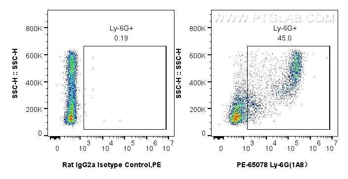 The Ly-6G antibody from Proteintech is a rat monoclonal antibody to a ly-6g transfected el-4j cell line of mouse Ly-6G. This antibody recognizes mouse antigen. The Ly-6G antibody has been validated for the following applications: FC analysis. This antibody is pe.
