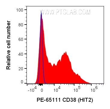The CD38 antibody from Proteintech is a mouse monoclonal antibody to a cells of human CD38. This antibody recognizes human antigen. The CD38 antibody has been validated for the following applications: FC analysis. This antibody is pe.