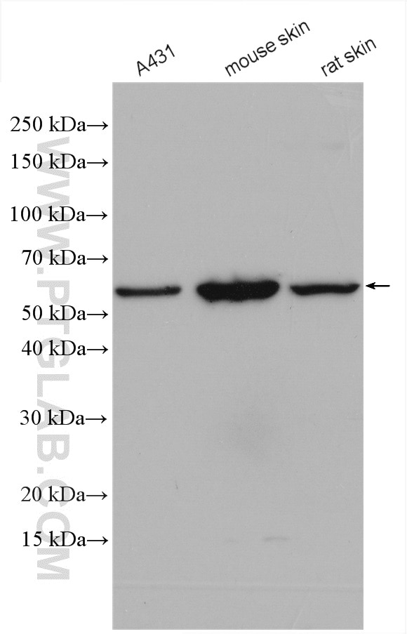 The Cytokeratin 5 antibody from Proteintech is a rabbit polyclonal antibody to a recombinant protein of human Cytokeratin 5. This antibody recognizes human, mouse, rat antigen. The Cytokeratin 5 antibody has been validated for the following applications: WB, IHC, IF/ICC, IF-P, ELISA analysis.
