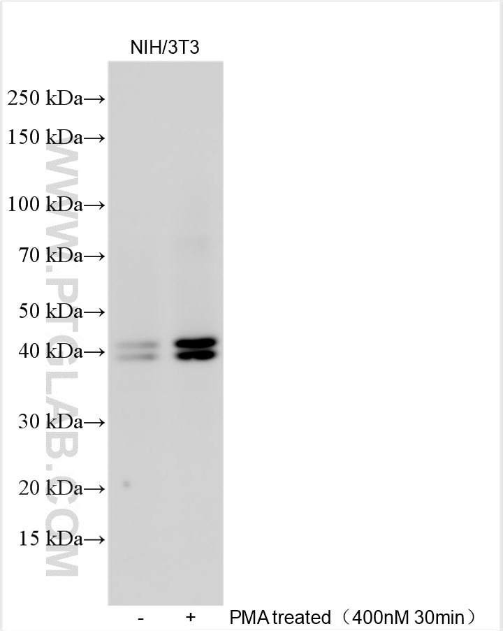 The Phospho-ERK1/2 (Thr202/Tyr204) antibody from Proteintech is a rabbit polyclonal antibody to a peptide of human Phospho-ERK1/2 (Thr202/Tyr204). This antibody recognizes human, mouse antigen. The Phospho-ERK1/2 (Thr202/Tyr204) antibody has been validated for the following applications: WB, IP, ELISA analysis.
