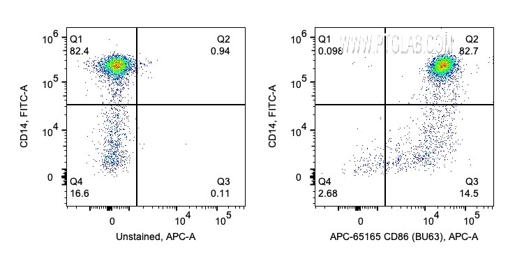 The CD86 antibody from Proteintech is a mouse monoclonal antibody to a b-lymphoblastoid cell line arh 77 of human CD86. This antibody recognizes human antigen. The CD86 antibody has been validated for the following applications: FC analysis. This antibody is apc.