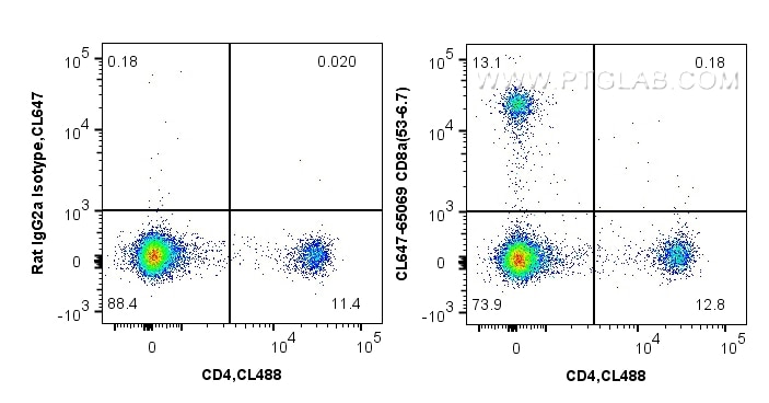 The CD8a antibody from Proteintech is a rat monoclonal antibody to a spleen cells or thymocyte membranes of mouse CD8a. This antibody recognizes mouse antigen. The CD8a antibody has been validated for the following applications: IF/ICC, FC analysis. This antibody is coraliteR plus 647.