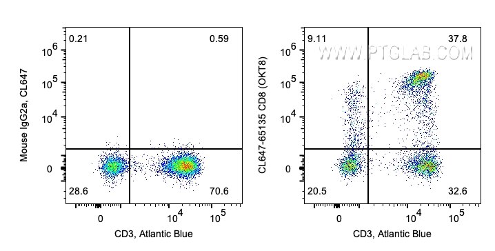 The CD8a antibody from Proteintech is a mouse monoclonal antibody to a human thymocytes of human CD8a. This antibody recognizes human antigen. The CD8a antibody has been validated for the following applications: FC analysis. This antibody is coraliteR plus 647.