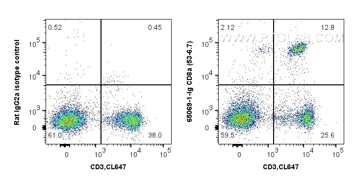 The CD8a antibody from Proteintech is a rat monoclonal antibody to a spleen cells or thymocyte membranes of mouse CD8a. This antibody recognizes mouse antigen. The CD8a antibody has been validated for the following applications: FC analysis.