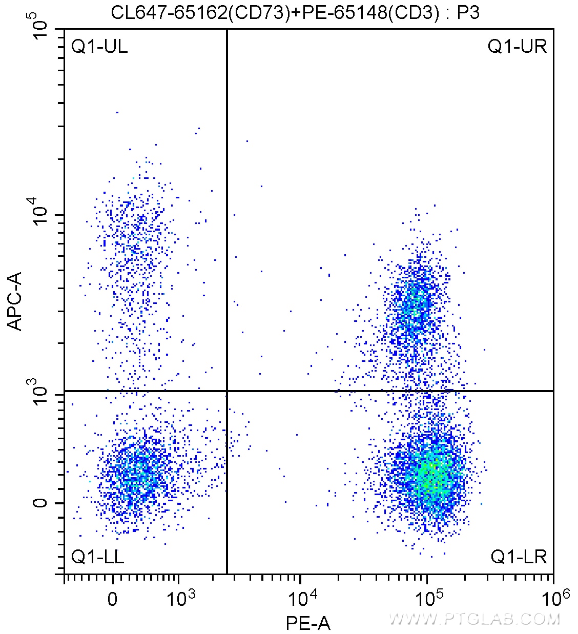 The CD73 antibody from Proteintech is a mouse monoclonal antibody to a pre-b leukemia cell line of human CD73. This antibody recognizes human antigen. The CD73 antibody has been validated for the following applications: FC analysis. This antibody is coraliteR plus 647.