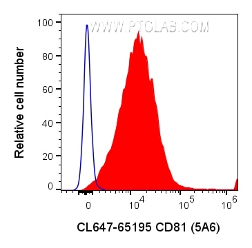 The CD81 antibody from Proteintech is a mouse monoclonal antibody to a human oci-ly8 cell line of human CD81. This antibody recognizes human antigen. The CD81 antibody has been validated for the following applications: FC analysis. This antibody is coraliteR plus 647.