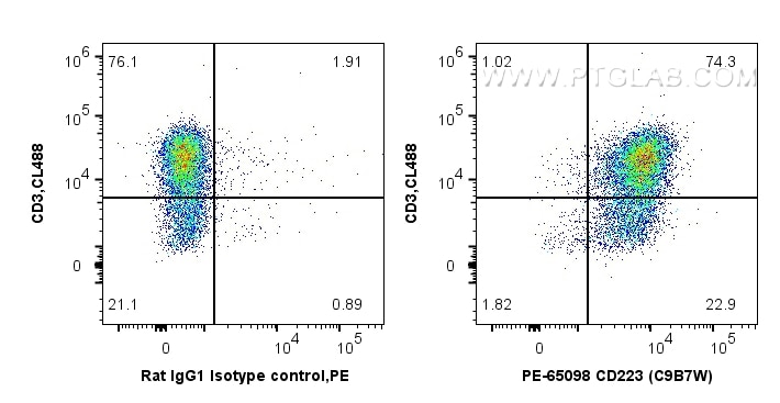 The LAG-3/CD223 antibody from Proteintech is a rat monoclonal antibody to a murine cd223-ig fusion protein of mouse LAG-3/CD223. This antibody recognizes mouse antigen. The LAG-3/CD223 antibody has been validated for the following applications: FC analysis. This antibody is pe.