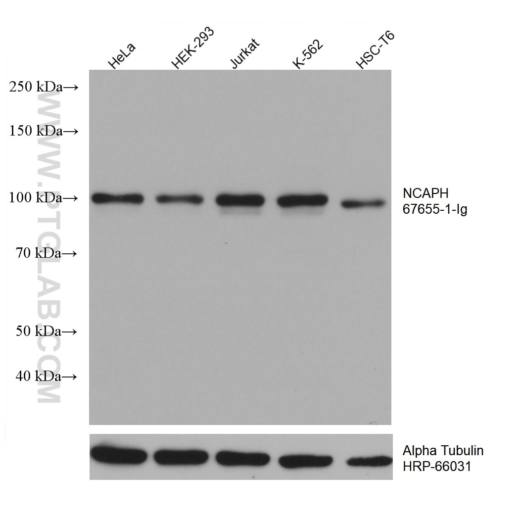 The NCAPH antibody from Proteintech is a mouse monoclonal antibody to a recombinant protein of human NCAPH. This antibody recognizes human, mouse, rat antigen. The NCAPH antibody has been validated for the following applications: WB, IHC, IF-P, ELISA analysis.