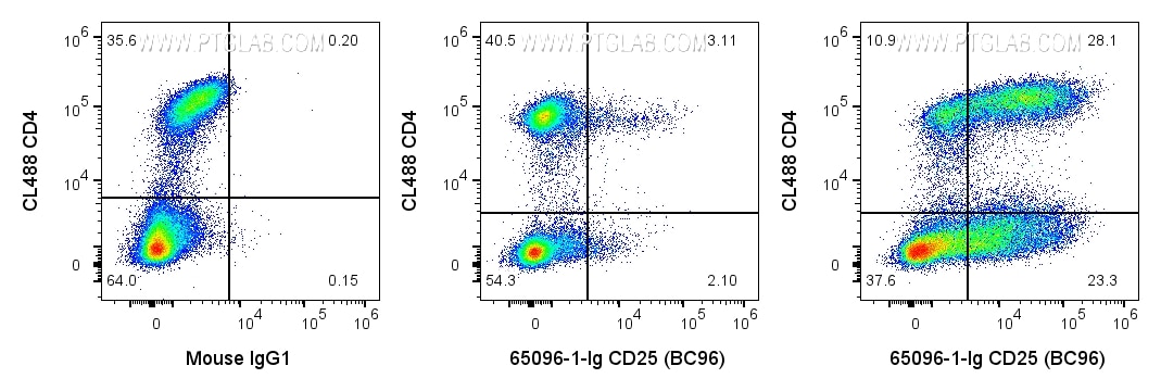 The CD25 antibody from Proteintech is a mouse monoclonal antibody to a n/a of human CD25. This antibody recognizes human antigen. The CD25 antibody has been validated for the following applications: FC analysis.