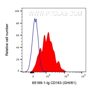 The CD163 antibody from Proteintech is a mouse monoclonal antibody to a glycoprotein preparation from hairy cell leukemia spleen of human CD163. This antibody recognizes human antigen. The CD163 antibody has been validated for the following applications: FC analysis.