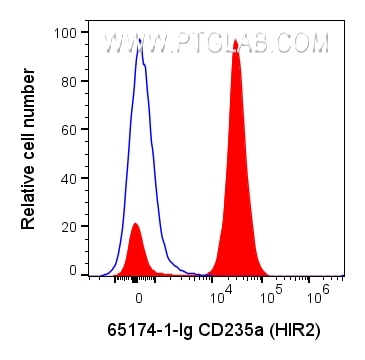 The Glycophorin A/CD235a antibody from Proteintech is a mouse monoclonal antibody to a synthetic peptide (human, n-terminal) of human Glycophorin A/CD235a. This antibody recognizes human antigen. The Glycophorin A/CD235a antibody has been validated for the following applications: FC analysis.