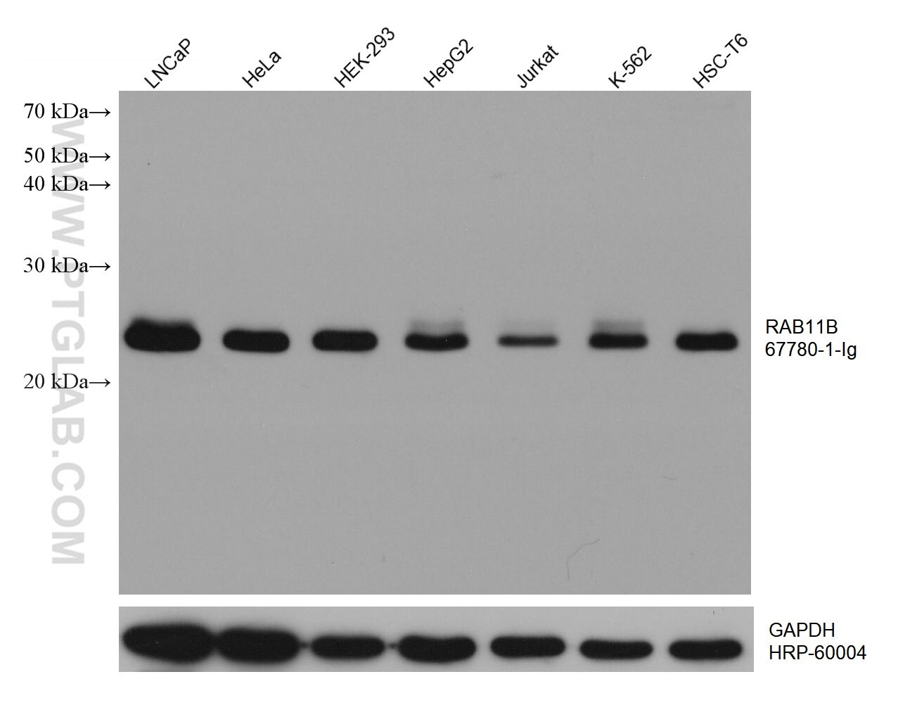The RAB11B antibody from Proteintech is a mouse monoclonal antibody to a recombinant protein of human RAB11B. This antibody recognizes human, mouse, rat antigen. The RAB11B antibody has been validated for the following applications: WB, ELISA analysis.