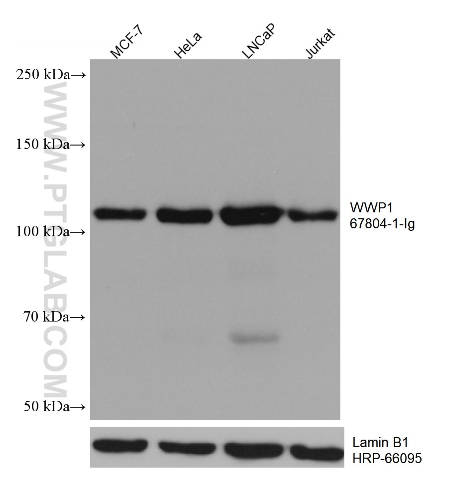 The WWP1 antibody from Proteintech is a mouse monoclonal antibody to a recombinant protein of human WWP1. This antibody recognizes human antigen. The WWP1 antibody has been validated for the following applications: WB, ELISA analysis.