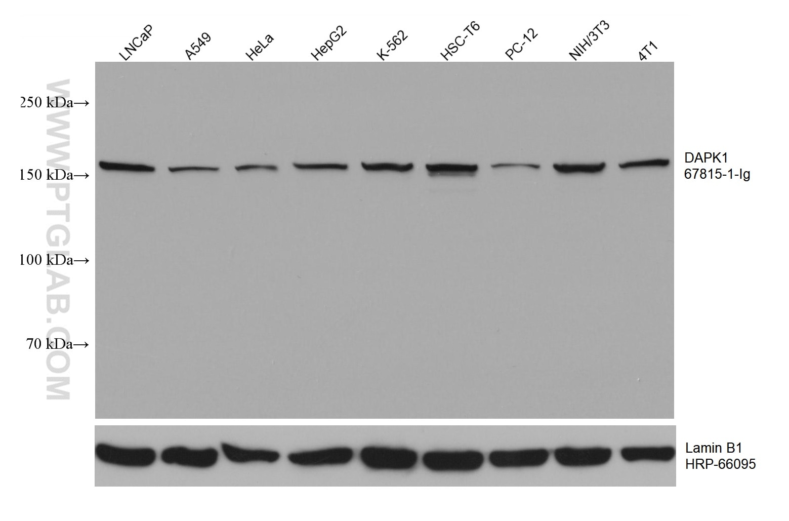 The DAPK1 antibody from Proteintech is a mouse monoclonal antibody to a recombinant protein of human DAPK1. This antibody recognizes human, mouse, rat antigen. The DAPK1 antibody has been validated for the following applications: WB, IHC, IF/ICC, IF-P, FC (Intra), ELISA analysis.