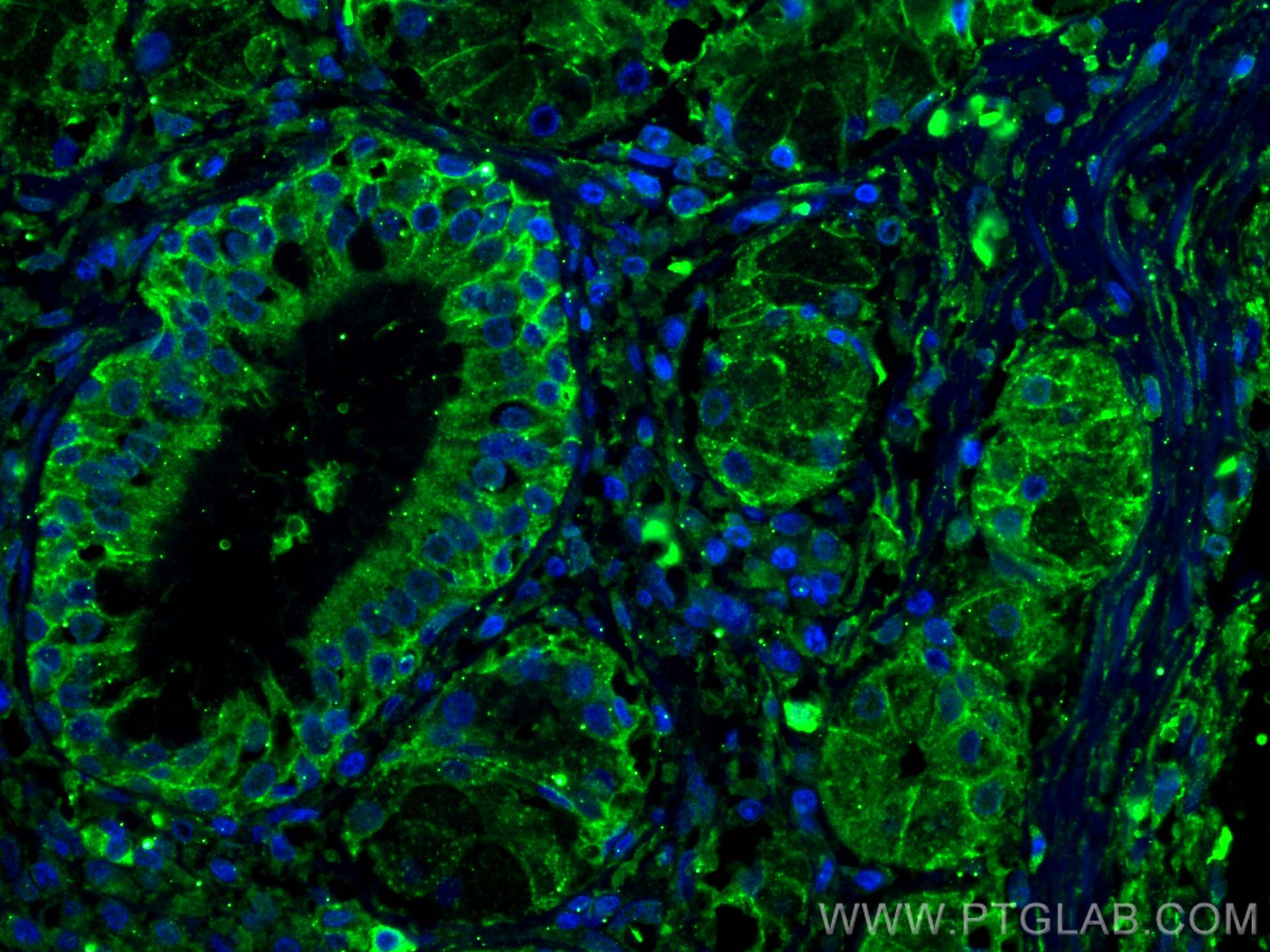 The CD9 antibody from Proteintech is a mouse monoclonal antibody to a recombinant protein of human CD9. This antibody recognizes human, rat antigen. The CD9 antibody has been validated for the following applications: IF-P analysis. This antibody is coraliteR plus 488.