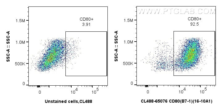The CD80 antibody from Proteintech is a armenian hamster monoclonal antibody to a cho cell line transfected with mouse b7 (cd80) of mouse CD80. This antibody recognizes mouse antigen. The CD80 antibody has been validated for the following applications: FC analysis. This antibody is coraliteR plus 488.